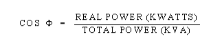 The ratio of the real power to the total power in the equation above (or the cos of phi) is called power factor. As the angle gets larger (caused by increasing reactive power) the power factor gets smaller. In fact, the power factor can vary from 0 to 1, and can be either inductive (lagging) or capacitive (leading). Capacitive loads are drawn down, and inductive loads are drawn up on the power triangle. Most industrials normally operate on the upper triangle (inductive or lagging triangle). As an industrial adds capacitors, the length of reactive (inductive) power leg is shortened by the number of capacitive KEC that were added. If the number of capacitive KEC added exceeds the industrials inductive KEC load, operation occurs on the lower triangle. This is commonly referred to as over compensation.